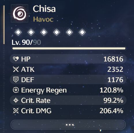 Nekem 40-ból meglett Chisa, meg olyan 60 ból a fegyvere, annyira nem rossz. Az echo farmolással még sokáig el leszek, sajnos kell neki a minimum 130% energy regen.