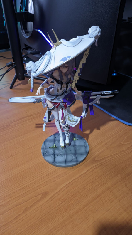 Ennek az Aemeath akrilnak annyi kis gondja volt, hogy a talpa/tartója nem volt jó mert az inkább ovális kivágású és ami belemegy meg téglalapra hasonlított inkább de ezt pár perc alatt megoldottam egy körömreszelővel.