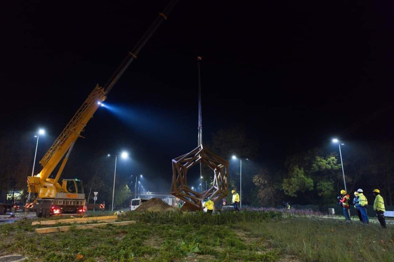 Helyére került az acélszobor a CAMPUS melletti körforgalomban! S hogyan kapcsolódik a műalkotás Egyetemünkhöz? "Az egyetemnél található körforgalomba egy hatszöges térváz került, amelynek címe: Hexaverzum. Ez az alkotás a mérnöki gondolat előtti tisztelgés. Egyrészt utal a készítő KÉSZ csoportra, másrészt az idén 60 éves GAMF Műszaki és Informatikai Karra is. Ez térbeli hexagonális forma a mérnökképzés gondolatiságát hordozza magában" -