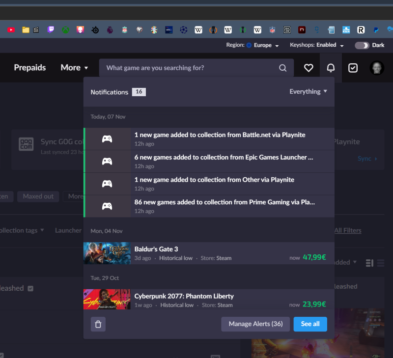a GG Deals most úgy néz ki valahogy együttműködik a Playnite-val, mert ma reggel ezek az értesítések fogadtak: