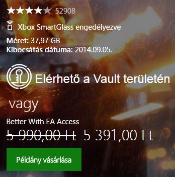 ((csak a "Példány vásárlása" kattintható, de ott megvásárolható és nem az EA Access-szel járó megoldással))