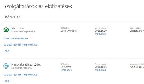 Nem, a microsoft profilján ott van az előfizetéseknél is a live, meg az ea is.