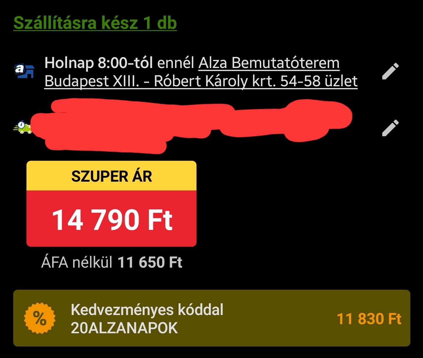 Alzanapos akcióban -20%, alzabox szállításal 12500 lett a vége. Ma megyek átvenni