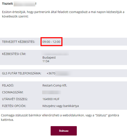 Gyíííííííí! Jön a futár 12 és 15 óra között.