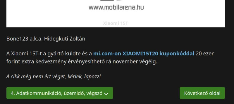 Sziasztok! Ha valaki még vásárlás előtt áll a mobilarénás kupon érvényessége november vége a sima X15-re (pro-ra nem). 5-én még működött. XIAOMI15T20 (20ezer jön le)