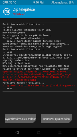 TWRP teljes törlés, Rom újrahúzás, ugyan az a hiba jött elő.