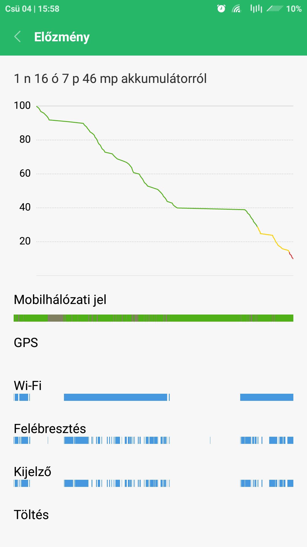Én meg reggel vettem le a töltőről és már 68%-on van 2 óra 24 percrs SOT-tal. Kb. 10 perc telefonálás, 2 perc Waze, háromszori e-mail szinkronizálás és kb. 2 óra böngészés.