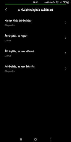 Telefonkagyló,3 vízszintes vonal hívásátirányítás beállításai.....