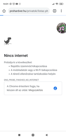 Az, hogy mobilnetről tudtál posztolni azt jelenti, hogy a munkahelyi hálón vagy lehalt a DNS szerver vagy DNS szinten van tiltva a prohardver.De az is lehet, hogy a Chrome DNS-t használ az internetkapcsolat ellenörzéséhez, amibel gond volt, ezért a DNS_PROBE_FINISHED_NO_INTERNET hibakód.