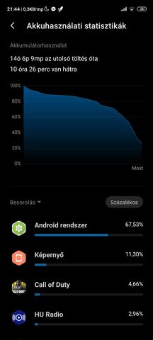 Állítsd át a "besorolást" és nézd meg a sima diagramot, mennyit van ébren a készülék mikor nincs bekapcsolva a kijelző. Ha sok az ébrenlét én meg szoktam nézni Battery Historian-al (ha nincs root ha van..) hogy mi a nyavaja történik ([itt] keress rá hogy "nem alszik a telefon").