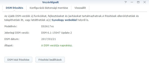Frissítés DSM6.1 3615xs-ről DSM6.1 3617xs-re adatok és beállítások megtartásával lépésekben! (Összefoglalóba is bekerülhetne)