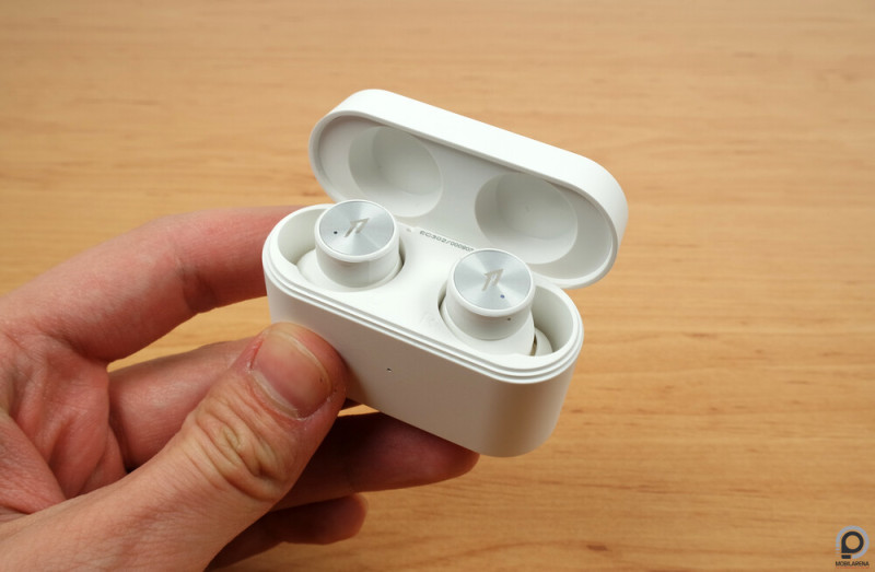 Darabja 4,5 grammot nyom a füleseknek, az én átlagos méretű fülemben az M-es gumiharanggal kényelmesen megültek, nem álltak ki nagyon a fülemből, és egy egyórás futás során sem mozogtak el. IPX5 védettségük van, izzadtság vagy apróbb eső elvileg nem tesz bennük kárt, arra azért vigyázzunk, hogy ne mossuk ki őket. Szerkesztőségünkbe fehér tesztpéldány érkezett, ennél a tok teteje és a fülhallgatók szelepfejre hasonlító végén levő érintőfelület fémesen ezüst színű, a fekete verziónál fekete. A termosztatikus szelepfejre emlékeztető egységet megfogva könnyű a hallójáratba bedugni a fülest, és ha esetleg igazgatni kell, akkor sem fogjuk véletlenül parancsra ingerelni az érintőrészt. A fehér tok táskában, nadrág- és kabátzsebben is utazott velem, foltot, elszíneződést nem szedett magára.