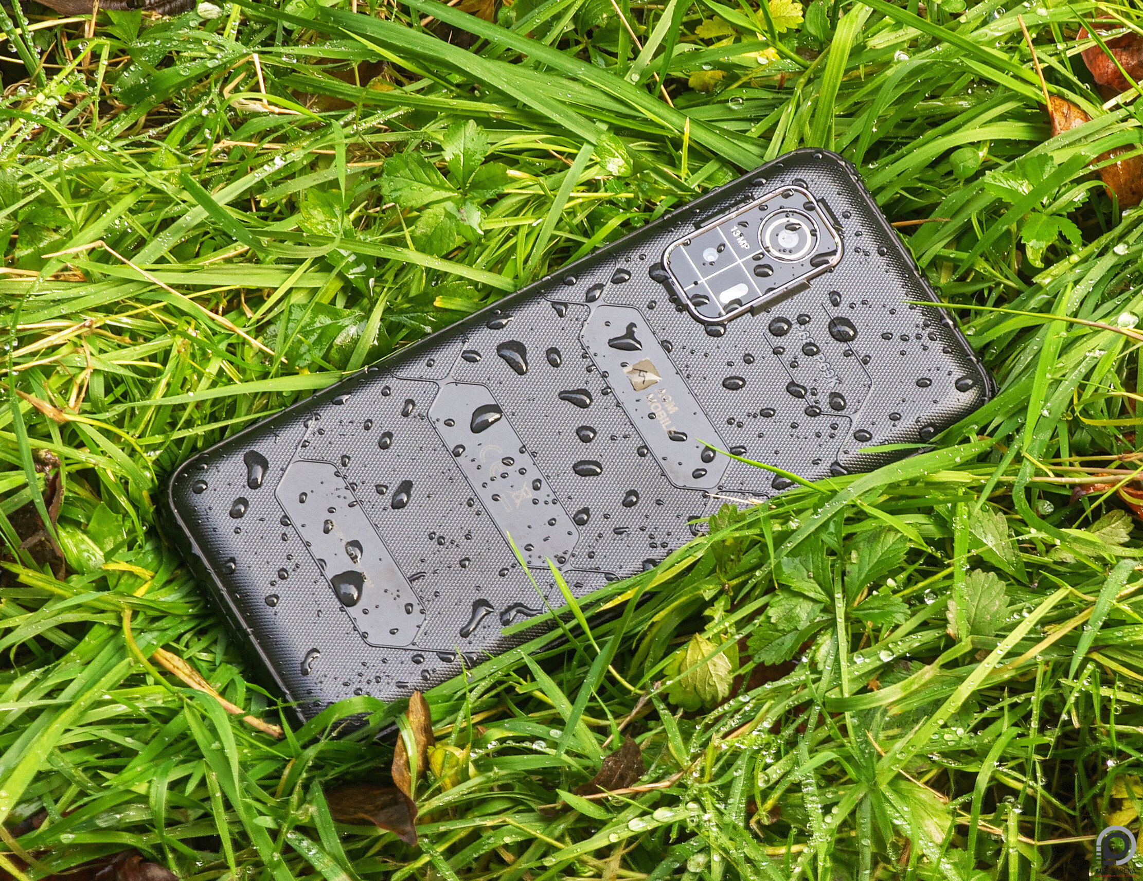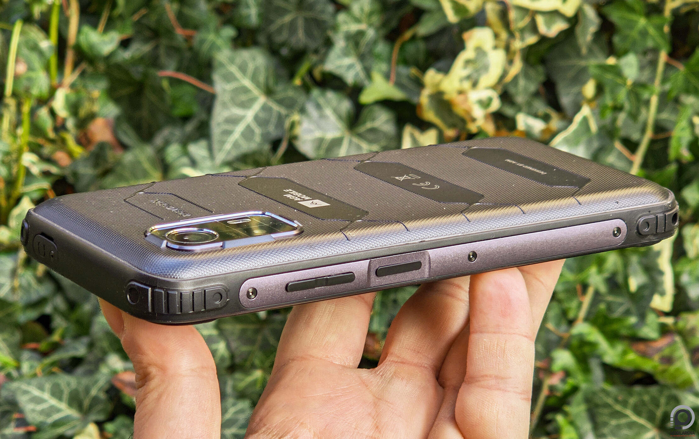 Ez a strapatelefon brutalista stílus helyett a lekerekítettebb vonásokat preferálja erős műanyag házzal és fémerősítéssel a széleken. Mondjuk ettől még a cucc 172,55 x 79,6 x 15,65 milliméteren és 324 grammon brutálisan nagy, két kézzel ideális csak használni és lehúzza a táskát, zsebet vagy szatyrot, amiben hordozzuk. Cserébe tényleg roppant szívósnak tűnik, minden szorongatást némán tűr és nincs semmi illesztési bizonytalanság.