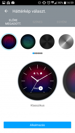A Watch szekcióban több dolgot babrálhatunk. A riasztást konfigurálhatjuk: maximum két ébresztést adhatunk meg, ehhez időpontot, napot, illetve ismétlést rendelhetünk hozzá. A háttérképnél az órán lévő lehetőségekhez már képest sokkal több mindent személyre szabhatunk: a klasszikus, minimalista és digitális stílus mellett előre megadott hátterek közül választhatunk, ha ezek egyike sem nyerte el tetszésünket, akkor ott vannak az egy színből álló számlapok, plusz az egyéni fotók, amiket szintén háttérnek használhatunk. A Move erőssége, hogy sokféle értesítést képes az órára továbbítani (csak egy irányban működik a dolog), legyen az WhatsApp, Instragram, Facebook, hívás, SMS stb. Viszont nem mindent. Egyes gyártóknál például még a szöveges üzeneteket sem kezeli, és vannak olyan programok, amik szintén makacskodnak sajnos, ami azért rontja a használhatóságot. Az órán többnyire minden tartalmat elolvashatunk, ám sokszor csak annyi látszik, hogy kitől jött email, és annak mi a tárgya. Kilőni az óráról nem tudjuk ezeket, csak akkor tűnnek el, ha a telefonon megnéztük a dolgokat, vagy az információs függönyből eltávolítjuk a jelzéseket. A Move pont azokat a beállításokat használja, mint a telefon, így ha a Vibert úgy konfiguráltuk, hogy ne látszódjon a tartalom, akkor az órán sem fog.
