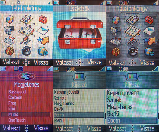 Hat különböző színséma közül választhatunk, és van hat különböző témánk is, amelyek módosítják a csengődallamokat, valamint a háttérképet is. Ezek lehetnek animált gif formátumúak is. Igencsak hasznos, hogy a betűméret is két lépcsőben állítható, a nagyobb fajta messziről is jól látható feliratokat eredményez. Az óra kijelzése egyik kedvencem lett, ugyanis nem csak a már megszokott analóg és digitális opciók közül választhatunk, hanem kirakhatunk időzónás kiírást is. Itt két várost kell kiválasztani a térképről, így egyszerre két idő is megjelenik, ám a városok neve átírható. Bármire.