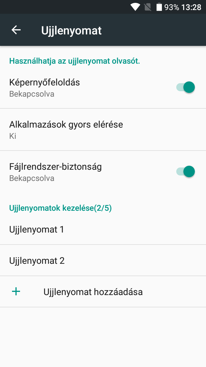 A hátlapi biometrikus szenzor elsősorban a készülék zárolására és feloldására hivatott, bár néhány dolgot még tudunk vele intézni. Az exponálás például pont nincs köztük, pedig szelfi esetén tökéletesen kézre esne a felület, nehéz megszokni, hogy feleslegesen tapicskolunk. Ezen kívül az alkalmazások gyors elérését kérhetjük, a regisztrált ujjlenyomatokhoz (maximum 5) rendelhetünk appokat, így adott ujjal rögtön az alkalmazásba nyitja a készüléket a főoldal helyett. A Médialbumnak nevezett fájlkezelőben pedig a Biztonsági tárolót biztosíthatjuk. Ehhez szükség lesz még egy, vagy akár a készülék zárolásánál is megadott PIN kódra, valamint egy biztonsági kérdés megválaszolására. Ha ezzel megvagyunk, már hozzárendelhetünk ujjlenyomatot az úgynevezett SafeBoxhoz, ahol képeket, videókat, zenéket, vagy dokumentumokat tárolhatunk. Sajnos a webes bejelentkezésre nem tudtuk rávenni a rendszert, pedig volt róla szó, hogy erre is képes lesz. Maga a szenzor egyébként kitűnő helyen van, nagyon pontos, csak feltűnően lassú, ellenben soha nem téved. Minden esetben sikerül az érintés alapú feloldás. Komótosan, de tényleg mindig sikerül.
