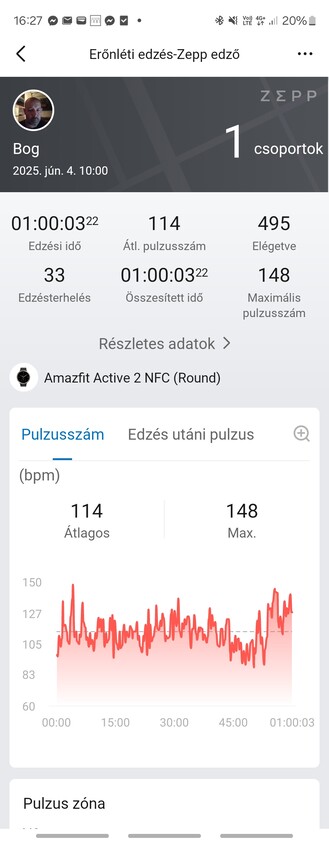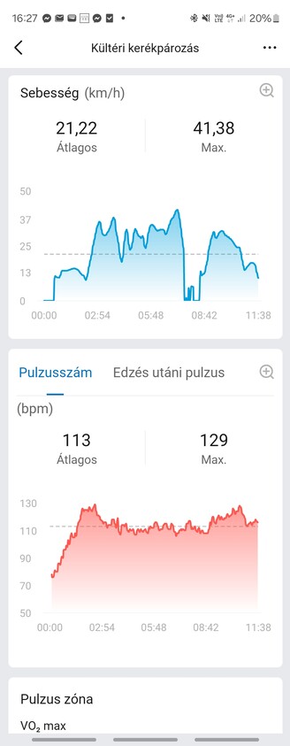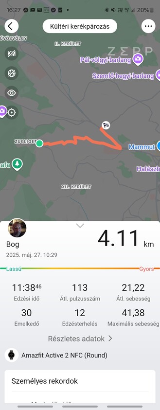 Egy könnyed bringázással kezdtem, 4,11 kilométert mért a Samsung, 4,16-ot az Amazfit, ez 50 méternyi eltérés, szintemelkedésben 78 és 82 métert jeleztek az órák, 120 és 123 volt az átlagos pulzusszám, az Amazfit viszont nem számolt elégetett kalóriát. Az edzőtermi súlyzógépes gyakorlat már izgalmasabb volt (mármint nem nekem, hanem az órák számára), mert ilyenkor gyorsan változik a pulzus. Az Amazfit átlagban hozta azt, amit a Samsung is mért, de pillanatnyi értékek kapcsán még mindig lassabban vette észre, amikor tényleg megerőltettem magam, már javában pihentem két széria között, amikor még mindig felfelé ment a pulzusom szerinte. Összességében viszont az eredmény stimmel, a maximális pulzusszám megegyezett az elégetett 495 kalóra a Samsung által mért 485-höz képest bőven hibahatáron belül volt. Az Amazfitnél lehet a gyakorlatokat szétválasztani, de sokra nem megyünk vele, ráadásul egy Garmin például felismeri a konditermi gyakorlatok fajtáját is és jelzi a megmozgatott izomcsoportokat, ezt elvileg az Amazfit is tudná, de a gyakorlatban nem jött neki össze.