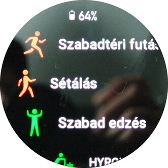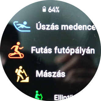 Az óra kezelése nem okoz meglepetést, valahogy mostanra már eléggé bevett dolog lett, hogy fentről jönnek le a gyorskapcsolók (sorrendjük változtatható), lentről az értesítések, jobbra-balra haladva pedig widgetek/funkciók között haladhatunk, amelyek szintén egyedileg állíthatók. A jobb felső gombbal a menübe ugrunk, alapesetben pedig az edzések közé haladhatunk az alsó billentyűvel, de a gombok rövid és hosszú megnyomásához is allokálható más funkció. Maga a menü lehet ömlesztett-ikonos, mint amilyen egy Apple Watch-nál is adódik, vagy listás-görgetős, ahol a menüpontok neveit is láthatjuk. Magyarul is, mert egész jó lett a fordítás, kevés ostobaság adódik, azok is általában valami eldugott menübugyorból bukkanak fel.