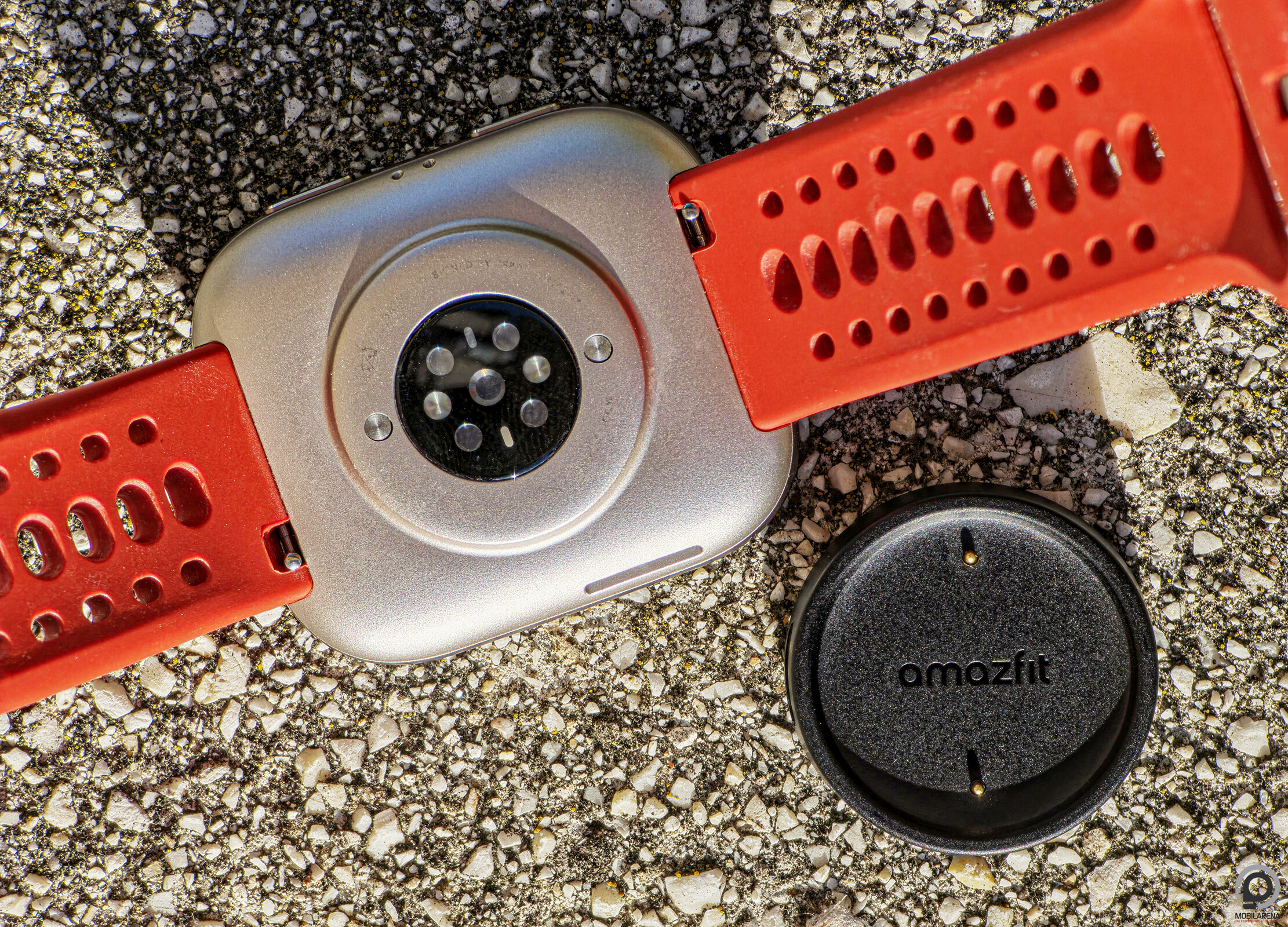 Hátul BioTracker optikai pulzoximéter dolgozik elektróda és EKG funkció nélkül, a két PIN pedig a mágneses bölcsőt fogadja, melyhez szerencsére nem rögzítettek USB-C kábelt. Mondjuk nem is mellékeltek semmilyent: a dobozban csak óra, leírás és töltőkorong van, ennyi pont elég. Az Amazfit kéthetes üzemidővel nagyzol általános használat mellett, de közelebb áll a valósághoz a hat nap, amit intenzív használattal ígér. Utóbbit napi egy GPS edzéssel, állandó pulzus-, stressz- és alváskövetéssel, gyakori értesítéskezeléssel, de kevés hanghívással és zenehallgatással megerősíthetem – műholdas edzések nélkül nálam a 10 nap is meglehet.