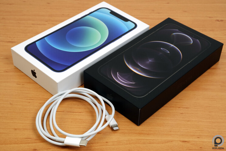A zöld hangulat jegyében egyébként a szállítási sérülésektől védő fóliát is papírra cserélték, ezzel persze gyorsan meg is oldották, hogy valaki a hangszórónál fóliát lyukasztgatva használja azt a mobil napi védelmére, de ezzel talán nincs is nagy gond. A lényeg, hogy a kábelen és a mobilon kívül nem találunk semmi mást az iPhone 12 és az iPhone 12 Pro azonos méretű dobozában. Köszönjük szépen ezúton is az iStyle-nak, hogy kölcsönadták nekünk a készülékeket!