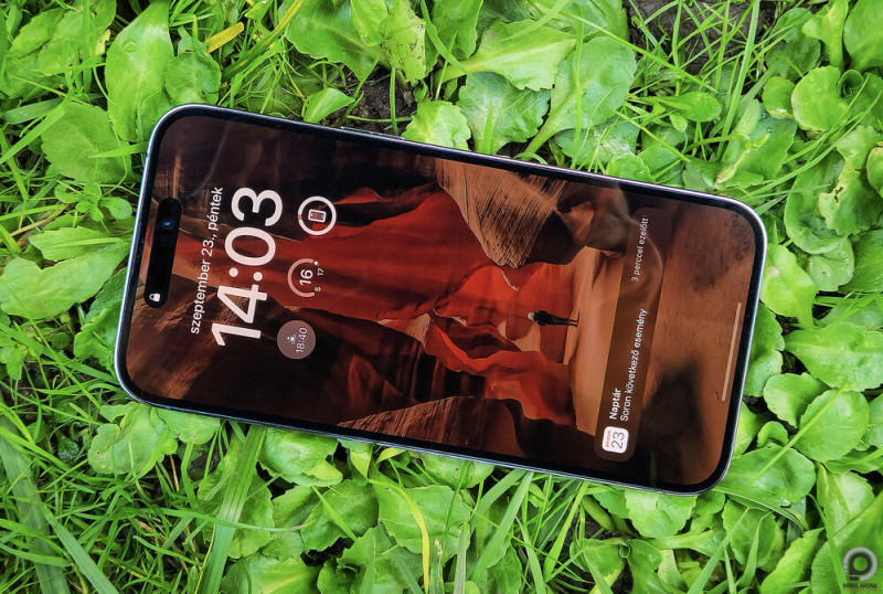 Az Always-on Display is belépett a képbe, és az Apple persze megmagyarázza, miért csak idén: a ProMotion kijelzővel és az 1 Hz-es képfrissítéssel, valamint az OLED és LTPO technológiákkal érett be a dolog annyira, hogy az állandó megjelenítés (iOS-en így hívják) minimálisan merítse csak az akkut. És akkor az Apple megcsinálta a dolgot értelmesen: a zárolt képernyő az, ami elhalványul és egész nap bekapcsolva marad, arra pedig megannyi, akár nap közben változó háttér, widget, élő tevékenység, lejátszókártya, értesítés és egyéb infó kiülhet.