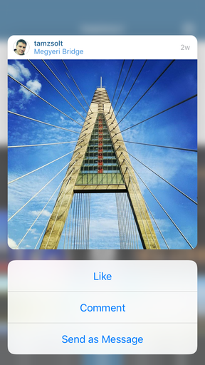 Az App Store esetén a keresésre vagy a redeem kódok beváltására nyílik lehetőség, a videóknál a legutóbbi filmeket játszhatjuk le azonnal, a böngészőnél pedig az olvasási listához, a könyvjelzőkhöz és a privát lapokhoz férünk instant hozzá, ha egy weboldalt olvasunk, és közben linkkel jelölnek valamit, akkor sem kell új lapban megnyitni, hanem a hivatkozást először kis ablakban is megtekinthetjük. Amelyik alkalmazás nem támogatja a 3D Touch-ot, ott erős megnyomás esetén berezzen a képernyő és háromszor a telefon.