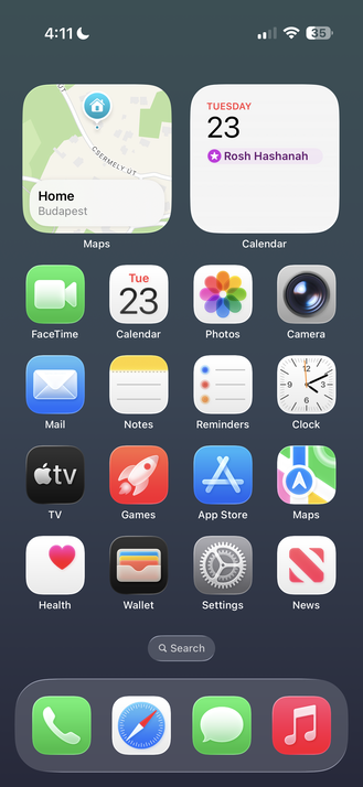 Ha viszont a mindennapi használat felől nézzük a vasat, akkor nincs ok a hisztire. Villámgyors, repeszt az iOS 26 rajta, nagyon gördülékenyen működik, nyoma nincs megdöccenésnek, pillanatnyi megakadásnak. Más kérdés, hogy az iOS 26-tal érkezett Liquid Glass interfész kinek mennyire jön be, szűk körű közvélemény-kutatási adataim szerint nem osztatlan a lelkesedés (passzoló mondás: ha Liquid Glasst akarsz, használj Windows Vistát), magam is úgy éreztem, hogy például az áttetszőre vett virtuális billentyűzet alól kékesen derengő gombok nem csak zavaróak olykor, de nagyon nem illenek az Apple-re közmondásosan ismert tökéletesen felhasználói élményhez. Tény viszont, hogy koherens, a gombok, ablakok, ikonok alakja illeszkedik a kijelző sarkainak lekerekítéséhez saját alkalmazásaikon belül, a külsős fejlesztők még nem vették át mind a Liquid Glass dizájnt, de amíg az Apple saját fejlesztésein belül mozgunk, minden felületen egységes a megjelenés, áttetszőek lehetnek az alkalmazások ikonjai is.