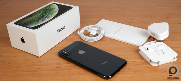 Emlékezzünk csak vissza az iPhone X dobozára, ami büszkén, félreérthetetlenül, nagy kontraszttal hirdette magán a notch meglétét, és most nézzük meg az azonos külcsínnel bíró XS-t: a csomagoláson és a gyári háttérképen is fekete háttérrel rejtegetik a szenzorszigetet, mintha ott se lenne. Megszokott, hogy az S modellek esetén változtatnak a dobozon, de ezt a lépést nehéz félreérteni. Sebaj, csomagoljuk ki, bízva a szokásos tartozékokban: hagyományos, lassú töltő megvan, normál USB-s Lightning kábel megvan, vezetékes EarPods megvan, de hol a 3,5 milliméteres adapter? Sebaj, majd bedobja a kedves vevő a méregdrága gyorstöltővel és az új MacBookokkal való töltéshez szükséges Type-C-s kábellel a kosárba, ennyi kompromisszum igazán belefér, nemde?