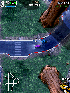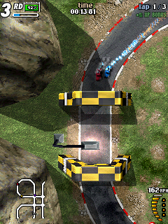 A program indulás után megkérdezi, hogy igényeljük-e a hangok bekapcsolását - bár ezt a Java alapú játékoktól már megszokhattuk, Pocket PC-n ritkaság. A válasz megadása után a látványos főmenüben találjuk magunkat, ahol akár egyből el is kezdhetjük a bajnokságot vagy a karrier módot, de előtte érdemes menni pár kört, mert az irányítást szokni kell. Vezetni ugyanis szokatlan módon nem a gombokkal, hanem az érintőkijelzőt használva érdemes - bár természetesen a gombokkal is lehet, de véleményem szerint azokat jobb meghagyni a fegyvereknek. Ahogy az a képeken is látszik, a grafika meglehetősen szép, a robbanáseffektek, a guminyomok sokat dobnak a hangulaton. A készítők külön ügyeltek a fényekre, a textúrákon található statikus árnyékok nagyon jól néznek ki. A hangok az átlagosnál jobbak, de csodát nem szabad várni.