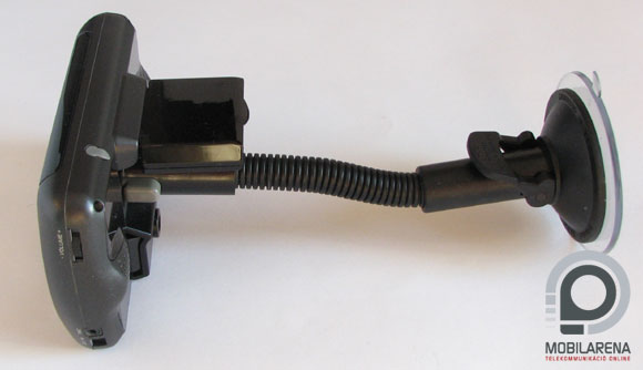 Navigation is helped by the SirfStar III chipset, with a foldable antenna. The manufacturer didn’t take any chances by any means, as the device can be inserted in the car holder only with an unfolded antenna. The car holder is the goose-neck type, it’s not too long, so it won’t "wave in the wind" as much as the Altina for example, but it still can’t hold a candle to Novogo’s solution. Inserting it in its holder is a bit tricky, as we have to press two buttons at the same time, but we don’t see them (for me it is usual that the holder is already on the windshield when inserting the navi). The display has a size of 3.5", there is no lack of luminosity. It finds the satellites quickly, this is probably helped by the foldable antenna.