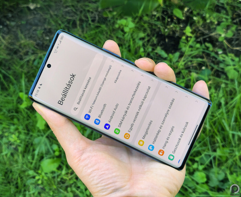 De akkor is: a letisztult, végletekig csiszolt kavicsforma Huawei P-sorozatos optikákkal és a Motorola Edge-et idéző, csúszós hátlappal pár éve negyedmillió forint felett nyitott, és akkor még hozzá sem tettem, hogy itt feleannyiért nemcsak az 5050 mAh-s telep van meg, hanem a 66 wattos gyorstöltő is a dobozban, a két végén Type-C kábellel. Mindjárt biztosabb a fogás az ugyaninnen kiemelhető védőtokot feligazítva, és akad még a dobozban olvasnivaló, plusz a hibrid dupla nanoSIM / microSD tálcát alul nyitó tű. Nagyon profi a kivitel, szemrevaló a kék szórt üveg, meglepődik az utca embere az ismeretlen márka feliratot meglátva.