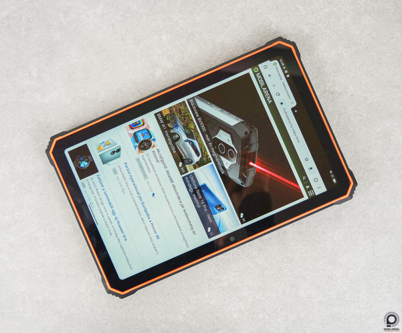 Ha hozzáveszem az értesítő LED-et, a fénymérőt és a közelségérzékelőt, illetve az egy-egy rácsot rövid oldalon sztereó hangzással, tényleg sokat kínál a tablet, amely a Blackview szerint -30 és 60 Celsius-fok között használható, és amely IP68/69K alapon állja a port és a vizet (másfél méter, 30 perc). Megvan a MIL-STD-810H katonai védelem az ütődéseknek (az ejtési magasság nincs pontosítva), az esőnek, a homoknak, a kosznak, a magas páratartalomnak és tengerszint feletti különféle magasságoknak, illetve az extrém gyorsulásnak ellenállva, és a masszív, megerősített TPU ház fog előbb kárt tenni abban, amire zuhan, mint saját magában.