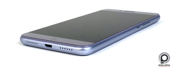Az alsó élen még microUSB típusú portot találunk a kétszer hat furat között, amelyek közül kizárólag a jobb oldaliból jön a hang, a másik mögött valószínűleg a beszédmikrofon bujkál. Másodlagos mikrofon nincs, jack csatlakozó van. Felül. De fülhallgató annak ellenére sincs a dobozban, hogy kényelmesen elfért volna. Közben jelezte a forgalmazó, hogy hivatalosan jár a készülékhez sztereó füles, valahogy véletlenül kimaradt a nekünk küldött csomagból, így viszont a kiegészítők listája igen gazdag és teljes. A viszonylag nagyméretű pakkban (és a kijelzőn is eleve) viszont van jó minőségű, vastagabb fajta kijelzővédő fólia és átlátszó szilikon tok.