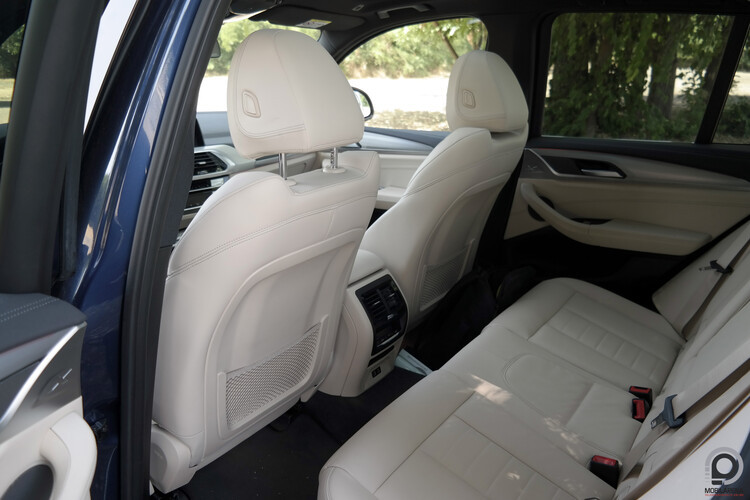 Az elektromosan nyíló csomagtér 510 literes, a kocsi emelt kialakítása miatt viszonylag magasra kell belepakolni, viszont a nyílás méretes, a pakolófelület aránylag egységes, egy töltőkábel pedig elfér az alsó padlóburkolat alatti tárolóban, így összességében jól használható, és alig kisebb, mint a sima X3 csomagtartója, a hátsó ülések feláldozásával 1560 literig lehet bővíteni a tárolóhelyet.
