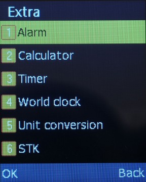 A beállítások között tudjuk konfigurálni az animációkat, a kontrasztot, a nyelvet (magyar nyelvet is tartalmaz a rendszer), az automatikus ki- és bekapcsolást, a már említett navigációs gombok funkciót, a SIM-eket, a kapcsolatok között pedig a Bluetooth-t, a GPRS szolgáltatást és az adatbarangolást találjuk. Az alkalmazások között leljük meg az ébresztőt (kikapcsolt telefon esetén is ébreszt!), a számológépet, a stoppert, valamint a mértékegység átváltót. Van fájlkezelő, és játékok terén is gondolt a felhasználókra a gyártó, retro szórakozást nyújt a kígyó és a tetris is. Az eszközök közé bújtatták az emlékeztetőt (csak szöveg), az E-könyv olvasót (azért megnézném, aki ekkora kijelzőn olvas könyvet), a JAVA alkalmazáskezelőt (JAR fájlokat lehet telepíteni), valamint a heti, havi és napi nézetet nézetet tartalmazó naptárt. Szót érdemelnek még a hangprofilok, így könnyedén válthatunk a hangos, az éjszakai, vagy éppen a rezgés között.