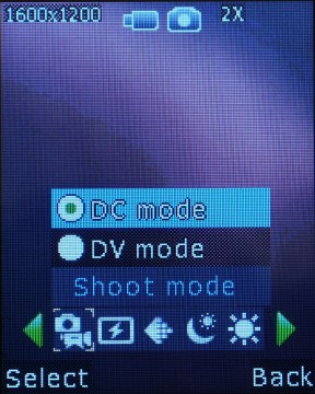 Előlapi kamera nincs, viszont van egy hátlapi 2 megapixeles fényképezőgép, ami fixfókuszos és munkáját sötétben egy ledes villanó segíti. Fotózás közben a jobb iránygombbal varázsolhatjuk el a beállításokat. Válthatunk a maximum 322 x 288 pixel felbontású videókra, aktiválhatjuk a vakut és az éjszakai üzemmódot, változtathatunk a képméreten, növelhetjük a fényerőt, módosíthatjuk a kontrasztarányt, a fehéregyensúlyt és az expozíciós korrekciót, plusz választhatunk sorozatfelvételt (3-6 darab), időzítőt (3-10 másodperc). A középső gombbal lehet exponálni, a képek mentése nagyon gyorsan történik.