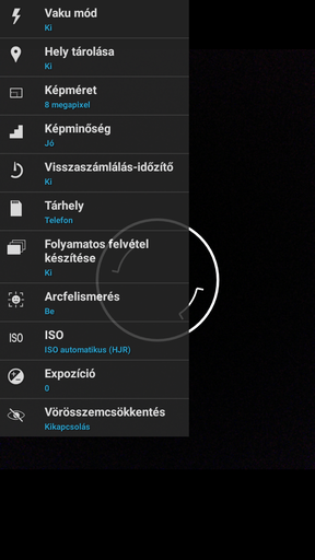 A kameraszoftver meglehetősen fapados, a legfontosabb opciók viszont kézre esnek. Ilyen a felső sorban található filterek, a kameraváltó, a HDR és a beállítások, amiben olyan nagyon sok minden már nem lesz. Videóra vagy panoráma módra az exponáló melletti kamera ikonra tapicskolva válthatunk. A főkamera mindössze 8 megapixelt tud összehozni, az előlapi pedig 2-t. Utóbbi fix fókuszos, előbbi azért rendelkezik autofókusszal és LED segédfénnyel. A beállításokban választhatunk képminőséget, ami lehet gyenge, sztenderd és jó. Milyen biztató, de legalább kellő önkritikával bíró jelzők.
