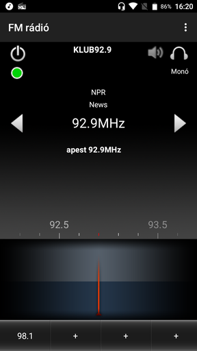 Zenét hallgatni a Google Play Zene segítségével tudunk, a felület és funkcionalitás megszokott, a hangszínbeállítások viszont egyedi megjelenésűek. Használni ugyan nem érdemes, mert az eleve szerény hangerőt tovább mérsékli, az élményhez viszont nem tesz hozzá érdemben. A hangzás egyébként nem különösebben rossz, viszont maximumon, ami nem valami erélyes, torzít. Fülhallgatóval valamivel jobb, teljesen hallgatható, noha kissé részlethiányos, a megjelenítési tartomány nem a legtágabb, a mélynek álcázott tartomány pedig dörmög. De nem is multimédiás eszköz. Viszont van FM-rádió, amit a kissé tompán szóló, gyári fülessel is el lehet hallgatni. Zenét viszont azzal még annyira sem érdemes, mint egy közepes eresztéssel.