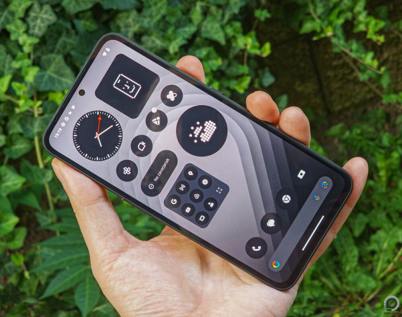 A 2000 nites elméleti maximumból „csak” 1239 nitet sikerült kimérni kis fehér négyzet felett, de így is versenyben van a panel a csúcskategória alsó felével, az érintési érzékenység pedig pontos. Azért kávából és hátlapi élből lehetne kevesebb az egész képernyő könnyebb megszelídítéséért egy kézzel, a CMF széria nyitókelléke mindenesetre elsőre karakteres lett profi illesztésekkel, elfogadható készülékvédelemmel és könnyű hátlapcserével. Kár, hogy a beszédhangszóró nem veszi ki a részét a multimédiából, így monó rács került a Type-C port mellé alulra, ahogy a 3,5 milliméteres kimenet is hiányzik. Megvan mindenesetre a fénymérő mellett az igazi közelségérzékelő.