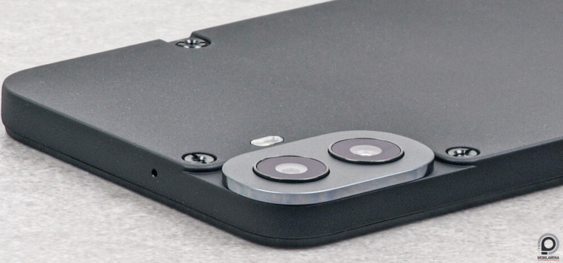 Még a nagyfelbontású kamera is kipipálva a jól tapadó, homokkőszerű plasztik hátlapon, portrésegéd és LED villanó társaságában, a 16 megapixeles szelfilyuk pedig igen aprócska a túloldalon. Az egészben mégis az egyedi hátlap a legérdekesebb, és nem csak rendhagyó formája miatt: pár M2-es csavart egyenesfejű csavarhúzóval meglazítva egy pengetővel vagy körömmel könnyen lekaphatjuk és másikra cserélhetjük.