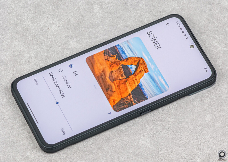 Komoly fegyvertény, hogy az amúgy nem sokkal a belépőszint határa felett belefért a 8/128 GB-os konfiguráció hibrid dual nanoSIM/microSD kártyával, akárcsak az IP52-es por- és cseppálló védelem, ami azért a SIM tálca és a hátlap belső gumizása ellenére nem teljesen vízálló. Megvan a fürge Dimensity 7300 5G chip WiFi 6 modullal, akárcsak a 120 Hz-es LTPO AMOLED panel HDR10+ támogatással.