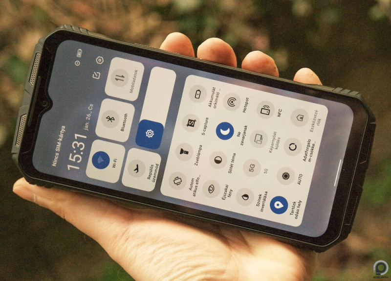 De azért írjuk le: a Doogee kolosszusa egy hetet vígan kibír két töltés között, és ebbe normál használat, fényképezés és 3D játék is belefér. 5G hálózaton lógva persze ez csökkenhet egy-két nappal, egyhuzamban ugyanakkor egyévnyi Mobilarena teszt végig olvasható, és a Netflix kínálatának jelentős része is lepöröghet alacsony felbontáson, csak bírjuk ki ébren. Ezért is vicces a 15%-on érkező rendszerszintű figyelmeztetés, miszerint alacsony a töltöttség, és kikapcsol a vaku, illetve a zseblámpa, amikor egy komplett iPhone 14-nyi energia lapul még benne.