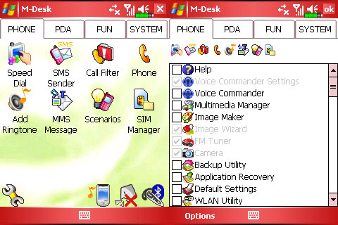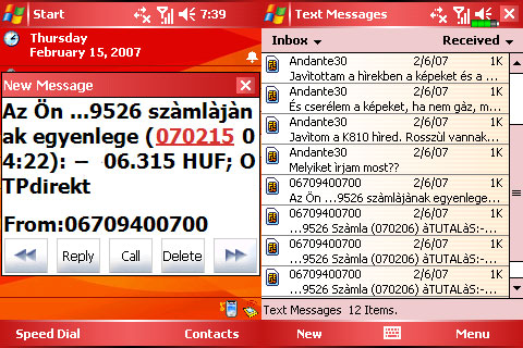 Nézzünk a GSM részt! Kapunk egy négysávos telefont, amely alapvetően jól szuperál, a beszédminőséggel semmi baj nem volt. Kezelni egyszerű, minden egyértelmű és kézreálló volt. A beviteli módokban is több lehetőségünk van: nyomkodhatjuk a képernyőn megjelenő gombokat, van kézírásfelismerés, de elő tudunk varázsolni egy virtuális billentyűzetet is. Az üzenetkezelésről mindenképpen érdemes ejteni néhány szót. A megszokott Windows-os kezelési felület, sok opcióval. Ha netán unatkoznánk, kapcsoljuk be az Easy Keyboard nevű alkalmazást, ez a kijelző jelentős részét igénybe veszi a virtuális billentyűk megjelenítésére, azonban a sorrend csak közelíti a számítógép gombsorát, garantáltan elvéve a szegény áldozat kedvét a hosszabb SMS-ek megírásától.