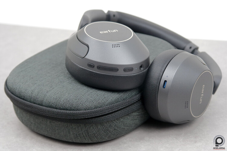 A bal kagylón találni az USB-C csatlakozót, ezen keresztül csak tölthető a beépített 800 mAh-s akkumulátor, hangátvitelre nem képes. Adott még egy töltésjelző LED, illetve mikrofonok is, érintőfelület nincsen, irányítás a jobb kagylón elhelyezett gombokkal történik. Ezekből négy van: be- és kikapcs, ANC, hangerő fel és hangerő le. Mellettük a 3,5 mm-es csatlakozó és egy újabb állapotjelző LED, ez fehéren világít bekapcsoláskor, villog párosítás módban, és pirosan villan fel, amikor kikapcsoljuk a fejhallgatót.