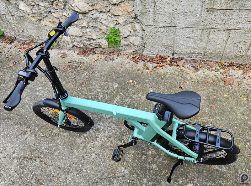 Kapásból nyomatékszenzoros, ami komfortos rásegítéssel kecsegtet. Össze lehet csukni, pedig az egész csak 18,5 kilogrammot nyom a mérlegen, ami az elektromos bringák világában a pehelysúly. Az összes most létező és majdan érkező szabályozásnak megfelel, hidraulikus fékeket kapott, de ami a leginkább vonzó, hogy lánc helyett szíjat használnak, ami nagyjából gondozásmentes és roppant halk. Szóval papíron az egész történet pont olyannak tűnt, ami egy ideális városi e-bringa képét vetítette előre.