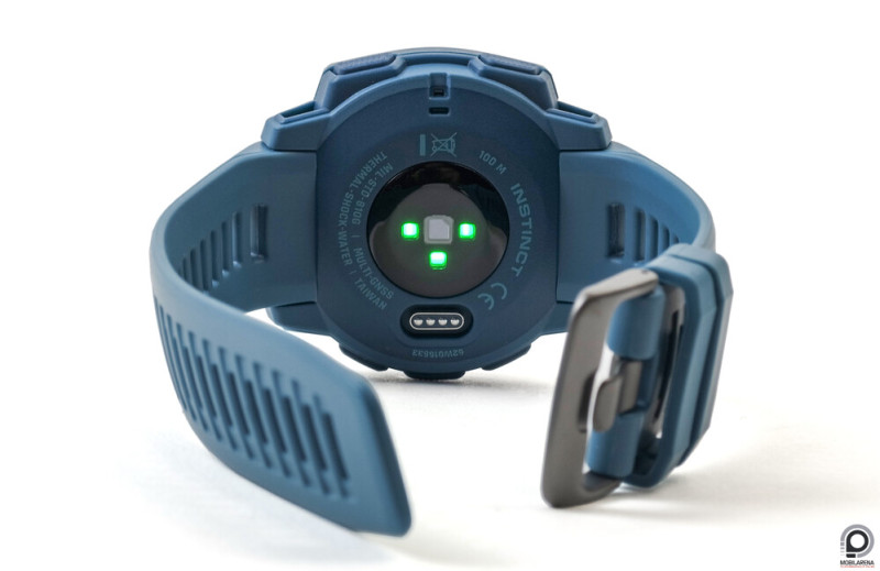 Nincs WiFi, eSIM, mikrofon, NFC vagy Garmin Pay hogy az Instinct a telefon vagy digitális személyünk kiterjesztése legyen, van viszont Bluetooth antenna ANT+-szal és minimum Android 5.0 / iOS 12 kompatibilitással, és ami sokkal fontosabb: minden, ami többnapos ultrafutáshoz vagy katonai bevetéshez kapóra jön. Ilyen a monokróm, odakint kitűnően látható, mindig aktív transzflektív kijelző 128 x 128 pixelen, nyolcszög kivitelben, kör alakú, informatív résszel a jobb felső sarokban. A kézzel állítható háttérvilágítás elég szerény, odabent mindenesetre elegendő, az Instinct Tactical változata pedig éjjellátóval együtt is használható. Akad GPS, GLONASS és Galileo műhold támogatás, akár ezek egyéni használatával vagy kombinációjával hadseregtől függően, alti-barométer, hő- és gyorsulásmérő, valamint iránytű és lépésszámláló.
