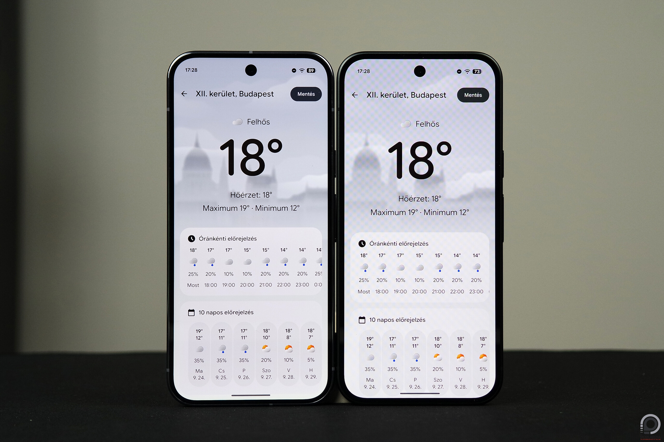 Mint az a táblázatból is kiolvasható, a Google idei mobiljai is magas fénysűrűséget képesek magukból kipréselni, teljesítve a gyártó által ígért maximumot. Nincs gond a kültéri olvashatósággal, láthatósággal, viszont az alacsony fényerő mellett használt 240 Hz-es PWM fejfájást okozhat a Pixel 10-en, és az olcsóbb telefonból hiányzik a 10 Próban elérhető kapcsoló, ami 480 Hz-re emeli a pulzusszélesség-modulációval történő fényesség csökkentést. Mindkét telefonban ott van a környezeti fényekhez és színhőmérséklethez alkalmazkodó Adaptív tónus, az éjszakai mód, a sötét mód, és mindkét panel 24-bites színmélységű. Nem rossz egyik panel sem, de a Pro a Dolby Vision támogatás hiányát leszámítva mindenben jobb. Tartalomfogyasztáshoz egységes a sztereó hangszórópáros, mindkét telefon ugyanolyan tisztán szól, megfelelő mennyiségű részlettel és méllyel a zsebmozizáshoz.