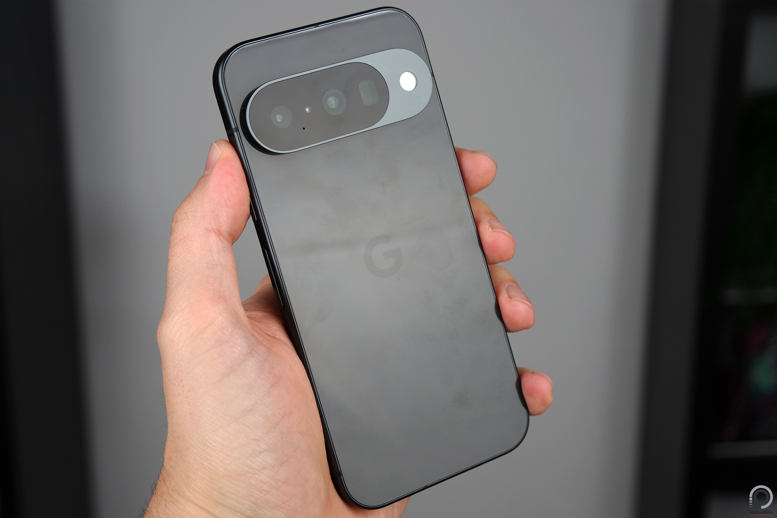 Minimális eltérés van a készülékház között, ami csak akkor tűnik fel, ha közvetlenül egymás mellett van a két telefon. Leszámítva a színeket persze, mert bár a tesztcsomagban sötét árnyalatú Pixeleket küldött a Google hazai képviselete, a 10-es modell indigó (kék), fagyos (halvány) lila, citromfű (zöldes sárga) árnyalatokban is elérhető a tesztre kapott obszidián mellett, a 10 Pro pedig a tesztelt holdkő szürke mellett megvásárolható jáde zöld, porcelán (fehér), és obszidián (fekete) árnyalatokban. A Pixel 10 esetén az alumínium keret matt, a hátlap Gorilla Glass Victus 2 üvege viszont fényes, a Pixel 10 Pro az alumínium keretet tartja fényesen, a hátlapi Victus 2 üveg pedig matt kezelést kapott. A Pixel 10 Pro szerintünk jobban néz ki, mert kevésbé gyűjti a maszatokat, viszont a matt felületkezelés okán jobban is csúszik az ember tenyerében. Egységes a telefonokban, hogy IP68 szigetelést élveznek, ugyanúgy a jobb oldalon vannak a gombok, alul az USB-C és hangszórók, felül a SIM-tálca és mikrofon, bal oldalon pedig semmi a kereten.