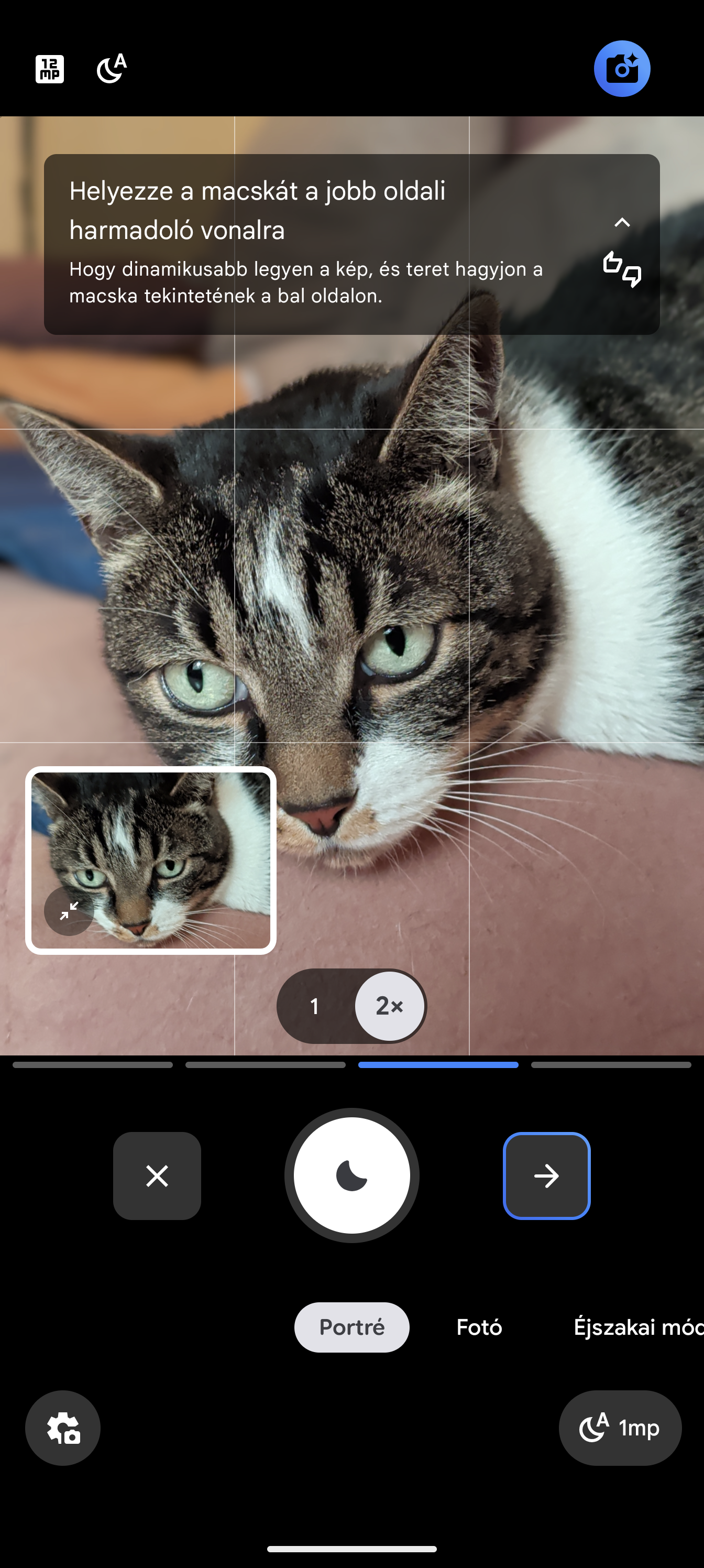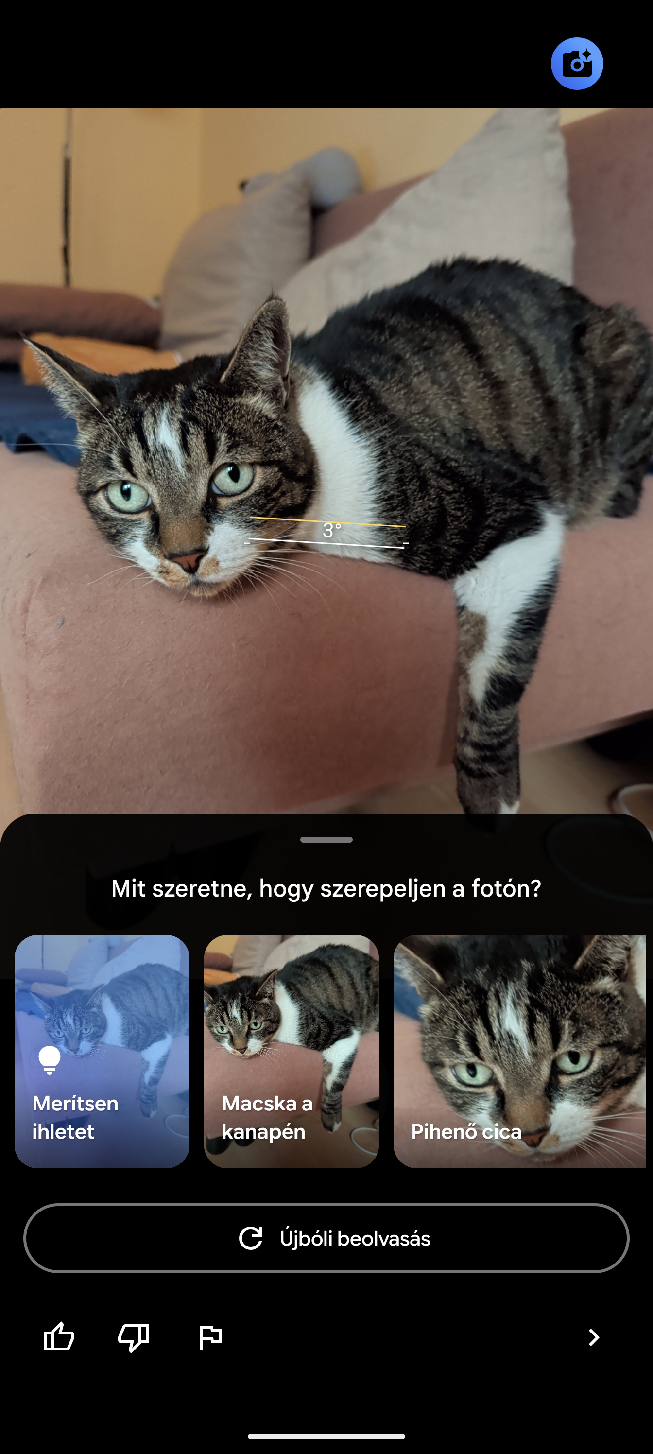 Ugyanez a kérdés felmerült bennem a Kamerasegéd kapcsán is. Ez megy magyarul is, a kamera alkalmazás keresőjében a jobb felső sarokban lehet bekapcsolni. Lokálisan fut, elemzi a kamera képét, majd az AI több ajánlást is tesz aszerint, amit a képen érzékelt. A témafelismerője hibátlan pontosságú. Ha kiválasztottuk, hogy melyik felajánlott téma tetszik a legjobban, négy lépésben végigvezet minket a gép a folyamaton, hogy a szerinte legjobb képet hogyan készíthetjük el. De igazából mi készítjük ezt a fényképet? Arra talán jó a Kamerasegéd, hogy megmutasson egy-két telefonban elérhető funkciót, mint mondjuk a portré mód, de félek, van egy olyan árnyalata is, mely megszünteti az igényt az eszköz funkcióinak vagy egy fénykép elkészítési folyamatának megtanulására és megöli az emberi spontaneitást, kreativitást.