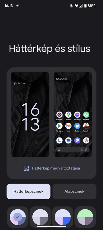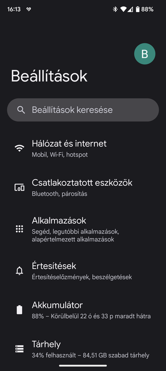 Az itt prezentáltnál tisztább Androidot sem lehet nagyon találni a piacon, bár vegyük hozzá, hogy azért a Google ezerrel tolja a szolgáltatásait, szerintem pedig otrombák a kapcsolópanel elnagyolt, ovális elemei és a Material You stílus is idétlenül hangzik. Érdekes, hogy a főoldalon még az ikonrács sem állítható, a keresősáv pedig kilakoltathatatlan, ezzel szemben a témát és az ikonstílust könnyen egyéni ízlésre szabhatjuk, akár a háttérhez igazítva, és 3D-s, illetve emoji hátteret is kreálhatunk. Hiányzik pár kulcs gesztusfunkció, pár másik és egy rakás szoftverfunkció viszont megvan, könnyen elérhetők például Google Home rendszerébe integrált kütyük és okosotthon cuccok. A telefon pedig képes érzékelni, ha kemény felületre tettük és visszafogja az ijesztően felszólaló rezgést.